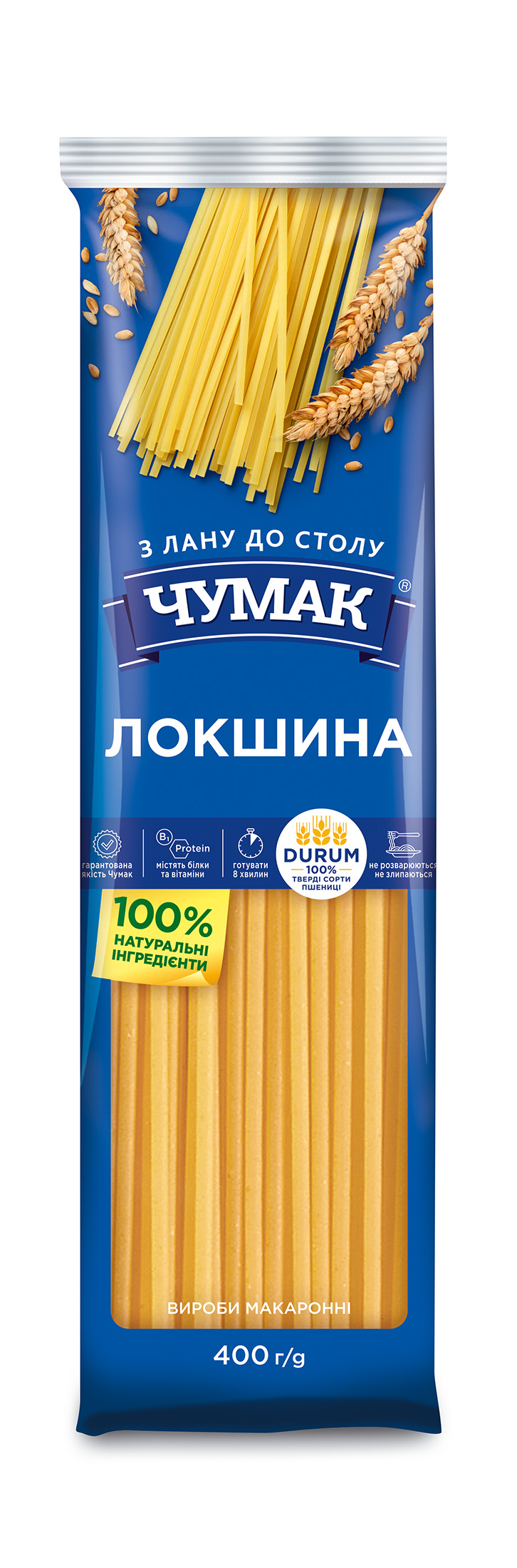 Classic type of pasta - Fettuccine are made from flat sheets of pasta cut into ribbon-shaped strands (known as "fettucce"). A very good pasta to serve with fresh vegetables and hot garlic sauce. This format of pasta can withstand extremely robust sauces with seafood or shellfish. Try it with Chumak "Pesto" sauce.